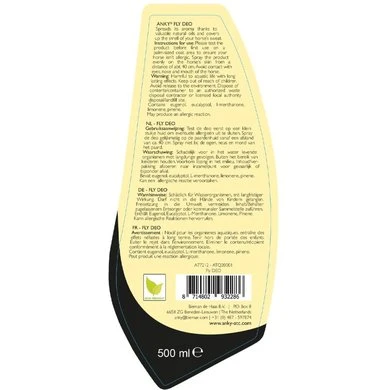 Gebruiksaanwijzing: test de deo eerst op een klein stukje huid om eventuele allergieën uit te sluiten. Spray de deo gelijkmatig op de paardenhuid vanaf een afstand van ca. 40 cm.