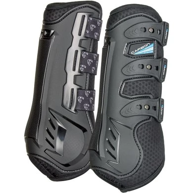 ARMA Carbon trainingslaarzen bieden vlieggewicht professionele multidisciplinaire trainingslaarzen voor wanneer een hoger niveau van allround bescherming vereist is. TRIPLE IMPACT SUPPORT SYSTEM: sterke TPU-buitenkant. Schokabsorberend geventileerd neopreen midden. Ademende mesh-voering. MAXIMALE VENTILATIE: Perforaties en mesh verhogen de luchtstroom rond de pezen om warmteophoping te verminderen. Snel rijden. FLEX FIT: De ergonomisch gevormde TPU-schaal verdedigt tegen impact, maar de flexibele structuur beweegt met het paard mee om maximale atletiek te vergemakkelijken. Elastische bandjes met speldsluiting voor een veilige, snelle pasvorm. Geschikt voor voorbenen.