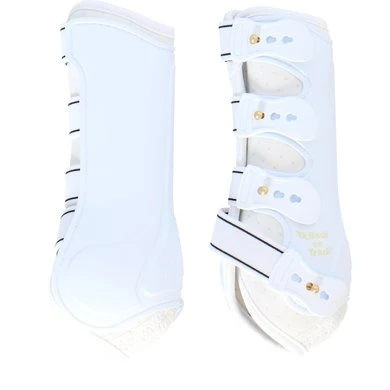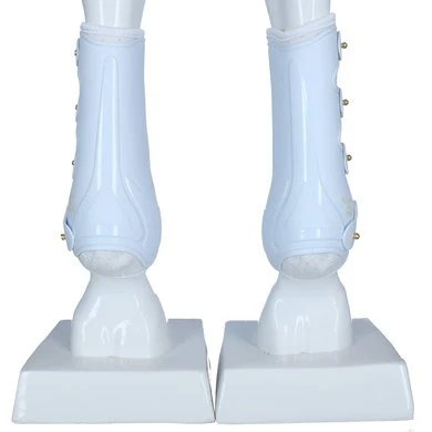 De Royal Work Boots zijn sterke peesbeschermers voor de voorbenen. De beschermers zijn gevoerd met Welltex® en neopreen. De buitenkant is gemaakt van sterk en duurzaam polypropyleen. De beschermer loopt door tot over de kogel en biedt daarom optimale bescherming, ook tegen aantikken. Door de lange passvorm is de beschermer zeer geschikt voor dressuurpaarden. De beschermer is voorzien van 4 verstelbare elastische sluitingen, die voor een optimale fit zorgen. Verkrijgbaar in zwart, bruin en wit, in de maten M (cob) en L (full).