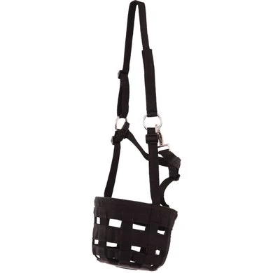 Stevig graasmasker met korf van TPU en riemen van polyester. Op de neus is de korf gevoerd met het zachte synthetische materiaal Antigol voor extra comfort. Het graasmasker zorgt ervoor dat het paard tijdens het grazen aanzienlijk minder gras kan eten en is om die reden geschikt voor paarden en pony’s met overgewicht of bij zeer rijk gras. Het masker kan eenvoudig bevestigd worden met behulp van de klittenbandsluiting aan het kopstuk en de karabijnhaak aan de keelriem. Alle riemen zijn verstelbaar. Het gebruik van een halster is niet nodig. Het graasmasker is eenvoudig te reinigen en hindert het paard of de pony niet tijdens ademhalen of drinken.