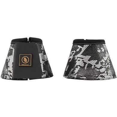 Deze stijlvolle springschoenen zijn voorzien van een opvallende slangenprint en een brede klittenbandsluiting. Ze zijn gemaakt van schokabsorberend neopreen. Springschoenen voorkomen dat het paard zichzelf verwondt door op de verzenen of op de achterkant van de ballen van de hoef te trappen.