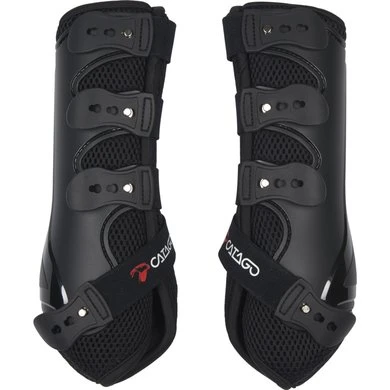 De CATAGO FIR-Tech dressuurlaars is een innovatieve en sterk ventilerende laars, die uw paard optimaal ondersteunt. De combinatie van een harde schaal, een zacht mesh-materiaal en de FIR-Tech Technology geeft je een uitstekende dressuurlaars. De FIR-Tech-stof bevat keramische deeltjes, die de lichaamswarmte van het paard terugkaatsen naar het weefsel. Hierdoor wordt de doorbloeding verhoogd, helpt het de pezen en gewrichten op te warmen en zacht en soepel te houden en blessures te voorkomen. De lichte mesh-stof laat overtollige warmte ontsnappen uit de benen van het paard. De harde PVC-schaal beschermt de paardenbenen tegen slagen.
