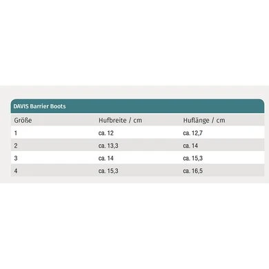 De DAVIS Barrier Boot kan worden gebruikt als vervanging voor een verloren hoefijzer om uw paard in evenwicht te houden totdat de schoen kan worden vervangen. Stevig, duurzaam PVC zorgt ervoor dat het paard onbeslagen kan lopen en beschermt de hoef tegen scheuren. Kan gebruikt worden als extra bescherming bij soort ziekte. Het bandachtige loopvlak biedt superieure tractie tijdens het lopen op trottoir, rotsen of sneeuw. Met de eenvoudige maar veilige aantrekapplicatie kun je de laars op elk moment gemakkelijk aantrekken zonder dat je extra gereedschap nodig hebt. De Barrier Boot blijft veilig zitten met een sterke nylon verstelbare riem zonder de hoefwand te beschadigen.