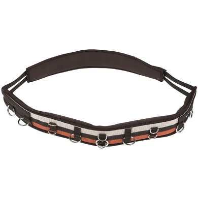 Van neopreen gevoerd polypropyleen met foam gevulde kussens. Heeft 15 metalen ringen op de rug zijde en onder de buik. 2 singelstoten en een afneembare singel met metalen gesp sluiting.