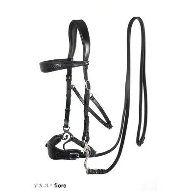 F.R.A. bitloos systeem 2: bitloze optomingen zijn niet nieuw! Eeuwenlang werd een bitloze optoming als vanzelfsprekend ervaren, voordat er ooit aan werd gedacht iets in de mond van het paard te stoppen legde de mens er simpelweg iets omheen. Een touw als halster was destijds voldoende en zo ontstond de eerste bitloze optoming. In combinatie met de ondersteunende gewichts-,been- en gevoelshulpen onderhoudt de ruiterhand via de teugels kontakt, niet met de mond, maar met het hoofd van het paard. Die teugelhulpen worden doorgegeven aan neus, nek en òf wangen. F.R.A.® bitloos biedt je een scala aan bitloze optomingen: maten van shetty tot shire, in diverse designs en materialen van katoen tot leder. F.R.A. bitloos systeem 2: Werkingsprincipe: druk op neus Algemeen: Paarden reageren van nature reflexmatig op druk op hun neus, elk onbedorven paard zal luisteren naar een op de neus uitgeoefende hulp door druk. Geschiktheid: Met de optoming is het opbouwen van een verfijnde, zeer duidelijke communicatie mogelijk. De optoming geeft zeer goede discriminerende signalen en de ervaren ruiter zal zich met deze bitloze optoming in relatief korte tijd goed voelen. In het algemeen biedt de optoming goede mogelijkheden voor het gebruik bij gevoelige paarden en in het bijzonder bij het inrijden van jonge paarden.