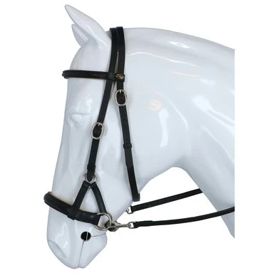 F.R.A. bitloos systeem 3: bitloze optomingen zijn niet nieuw! Eeuwenlang werd een bitloze optoming als vanzelfsprekend ervaren, voordat er ooit aan werd gedacht iets in de mond van het paard te stoppen legde de mens er simpelweg iets omheen. Een touw als halster was destijds voldoende en zo ontstond de eerste bitloze optoming. In combinatie met de ondersteunende gewichts-,been- en gevoelshulpen onderhoudt de ruiterhand via de teugels kontakt, niet met de mond, maar met het hoofd van het paard. Werkingsprincipe: druk op neus èn wangen, directe teugelvoering. Bouw: In systeem 3 kunnen we naast de F.R.A.® sidepull ook de diverse F.R.A.® knoophalsters onderbrengen. Sidepull: De lederen neusriem van deze eenvoudige optoming eindigt op beide wangen in een ring waaraan de kinriem en het bakstuk worden bevestigd. Aan een tweede ring op dezelfde plaats worden de teugels bevestigd hetgeen de teugelvoering verfijnt. Schuin verbindt een klein lederen riempje de neusriem nog eens extra met het bakstuk, dat houdt de neusriem netjes op zijn plaats en geeft de ruiter de mogelijkheid druk op de wang uit te oefenen.