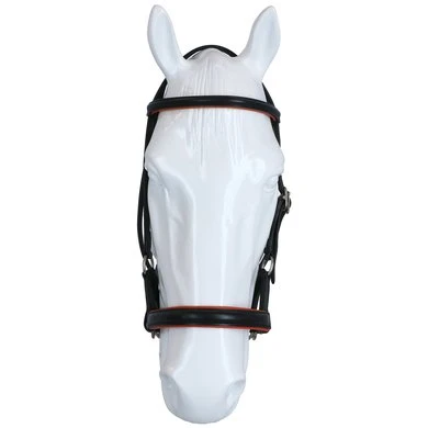 Touwknoophalsters: Touwknoophalsters zijn er in vele varianten en uitvoeringen, de F.R.A.® nh touwknoophalsters kenmerken zich door een veelvoud van maatvoeringen in de dikten 6, 7 en 8mm. Naast een basic uitvoering, de Babia, in 3 maten vind je een 6mm uitvoering, de Capal, in 5 maten en een 7mm uitvoering, de Pablo, in 3 maten. De laatste twee uitvoeringen zijn voorzien van een nubuck, resp. lederen nek- en neusbescherming en zijn gericht op professioneel gebruik. Juist de maatvoering van een knoophalster speelt een zeer belangrijke rol, het halster dient juist, zonder veel speling, aansluiting te vinden op het paardenhoofd. Ligging: Zoals bij alle bitloze optomingen geldt ook voor de sidepull en voor het knoophalster, dat de neusriem op het harde gedeelte van de neus moet liggen, ongeveer daar waar het neusbeen begint. De kinriem van de sidepull uitvoering mag gevoelsmatig ’te’ vast, maar beslist niet aangesnoerd zijn. Dit om verdraaiïng van het hoofdstel te voorkomen. Inwerking:Sidepull: Letterlijk vertaald betekent het woord sidepull : ’zijwaarts trekken’. Dat doet deze optoming dan ook, het van de hals afbrengen van de hand (openen) heeft tot gevolg dat de combinatie van de verbinding van het bakstuk naar de neusriem via beide riempjes en ring druk uitoefent op de tegenovergestelde wang: wendingen. Het vragen van de teugel (ophoudingen) heeft een discriminerende hulp van druk op de neus tot gevolg, hetgeen resulteert in tempowisselingen en òf halthouden. Dit uiteraard in combinatie met overige ondersteunende hulpen. Het hoofdstel leent zich tot normaal longeren uitsluitend met gebruik van een longeerbril. De longeerbril haakt u in de ringen waar normaal de teugels worden vastgemaakt. Voor het longeren aan de dubbele lijnen en pessoa longeren gebruikt u dezelfde ringen. (beschikbare modellen F.R.A.® pardoes en F.R.A.® shango)