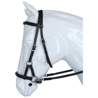 F.R.A. bitloos systeem 3: bitloze optomingen zijn niet nieuw! Eeuwenlang werd een bitloze optoming als vanzelfsprekend ervaren, voordat er ooit aan werd gedacht iets in de mond van het paard te stoppen legde de mens er simpelweg iets omheen. Een touw als halster was destijds voldoende en zo ontstond de eerste bitloze optoming. In combinatie met de ondersteunende gewichts-,been- en gevoelshulpen onderhoudt de ruiterhand via de teugels kontakt, niet met de mond, maar met het hoofd van het paard. Werkingsprincipe: druk op neus èn wangen, directe teugelvoering. Bouw: In systeem 3 kunnen we naast de F.R.A.® sidepull ook de diverse F.R.A.® knoophalsters onderbrengen. Sidepull: De lederen neusriem van deze eenvoudige optoming eindigt op beide wangen in een ring waaraan de kinriem en het bakstuk worden bevestigd. Aan een tweede ring op dezelfde plaats worden de teugels bevestigd hetgeen de teugelvoering verfijnt. Schuin verbindt een klein lederen riempje de neusriem nog eens extra met het bakstuk, dat houdt de neusriem netjes op zijn plaats en geeft de ruiter de mogelijkheid druk op de wang uit te oefenen.
