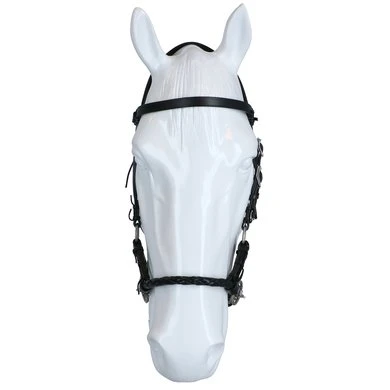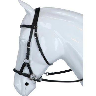 Touwknoophalsters: Touwknoophalsters zijn er in vele varianten en uitvoeringen, de F.R.A.® nh touwknoophalsters kenmerken zich door een veelvoud van maatvoeringen in de dikten 6, 7 en 8mm. Naast een basic uitvoering, de Babia, in 3 maten vind je een 6mm uitvoering, de Capal, in 5 maten en een 7mm uitvoering, de Pablo, in 3 maten. De laatste twee uitvoeringen zijn voorzien van een nubuck, resp. lederen nek- en neusbescherming en zijn gericht op professioneel gebruik. Juist de maatvoering van een knoophalster speelt een zeer belangrijke rol, het halster dient juist, zonder veel speling, aansluiting te vinden op het paardenhoofd. Ligging: Zoals bij alle bitloze optomingen geldt ook voor de sidepull en voor het knoophalster, dat de neusriem op het harde gedeelte van de neus moet liggen, ongeveer daar waar het neusbeen begint. De kinriem van de sidepull uitvoering mag gevoelsmatig ’te’ vast, maar beslist niet aangesnoerd zijn. Dit om verdraaiïng van het hoofdstel te voorkomen. Inwerking:Sidepull: Letterlijk vertaald betekent het woord sidepull : ’zijwaarts trekken’. Dat doet deze optoming dan ook, het van de hals afbrengen van de hand (openen) heeft tot gevolg dat de combinatie van de verbinding van het bakstuk naar de neusriem via beide riempjes en ring druk uitoefent op de tegenovergestelde wang: wendingen. Het vragen van de teugel (ophoudingen) heeft een discriminerende hulp van druk op de neus tot gevolg, hetgeen resulteert in tempowisselingen en òf halthouden. Dit uiteraard in combinatie met overige ondersteunende hulpen. Het hoofdstel leent zich tot normaal longeren uitsluitend met gebruik van een longeerbril. De longeerbril haakt u in de ringen waar normaal de teugels worden vastgemaakt. Voor het longeren aan de dubbele lijnen en pessoa longeren gebruikt u dezelfde ringen. (beschikbare modellen F.R.A.® pardoes en F.R.A.® shango)