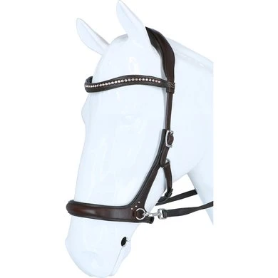 F.R.A. bitloos systeem 3: bitloze optomingen zijn niet nieuw! Eeuwenlang werd een bitloze optoming als vanzelfsprekend ervaren, voordat er ooit aan werd gedacht iets in de mond van het paard te stoppen legde de mens er simpelweg iets omheen. Een touw als halster was destijds voldoende en zo ontstond de eerste bitloze optoming. In combinatie met de ondersteunende gewichts-,been- en gevoelshulpen onderhoudt de ruiterhand via de teugels kontakt, niet met de mond, maar met het hoofd van het paard. Werkingsprincipe: druk op neus èn wangen, directe teugelvoering. Bouw: In systeem 3 kunnen we naast de F.R.A.® sidepull ook de diverse F.R.A.® knoophalsters onderbrengen. Sidepull: De lederen neusriem van deze eenvoudige optoming eindigt op beide wangen in een ring waaraan de kinriem en het bakstuk worden bevestigd. Aan een tweede ring op dezelfde plaats worden de teugels bevestigd hetgeen de teugelvoering verfijnt. Schuin verbindt een klein lederen riempje de neusriem nog eens extra met het bakstuk, dat houdt de neusriem netjes op zijn plaats en geeft de ruiter de mogelijkheid druk op de wang uit te oefenen.