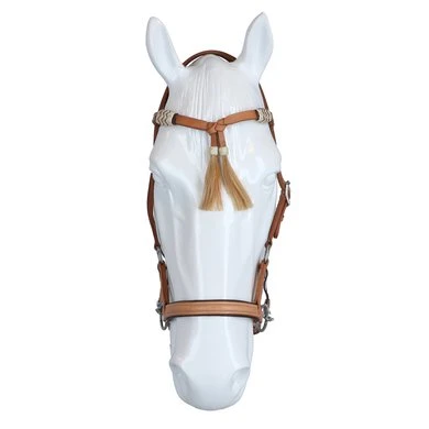 Touwknoophalsters: Touwknoophalsters zijn er in vele varianten en uitvoeringen, de F.R.A.® nh touwknoophalsters kenmerken zich door een veelvoud van maatvoeringen in de dikten 6, 7 en 8mm. Naast een basic uitvoering, de Babia, in 3 maten vind je een 6mm uitvoering, de Capal, in 5 maten en een 7mm uitvoering, de Pablo, in 3 maten. De laatste twee uitvoeringen zijn voorzien van een nubuck, resp. lederen nek- en neusbescherming en zijn gericht op professioneel gebruik. Juist de maatvoering van een knoophalster speelt een zeer belangrijke rol, het halster dient juist, zonder veel speling, aansluiting te vinden op het paardenhoofd. Ligging: Zoals bij alle bitloze optomingen geldt ook voor de sidepull en voor het knoophalster, dat de neusriem op het harde gedeelte van de neus moet liggen, ongeveer daar waar het neusbeen begint. De kinriem van de sidepull uitvoering mag gevoelsmatig ’te’ vast, maar beslist niet aangesnoerd zijn. Dit om verdraaiïng van het hoofdstel te voorkomen. Inwerking:Sidepull: Letterlijk vertaald betekent het woord sidepull : ’zijwaarts trekken’. Dat doet deze optoming dan ook, het van de hals afbrengen van de hand (openen) heeft tot gevolg dat de combinatie van de verbinding van het bakstuk naar de neusriem via beide riempjes en ring druk uitoefent op de tegenovergestelde wang: wendingen. Het vragen van de teugel (ophoudingen) heeft een discriminerende hulp van druk op de neus tot gevolg, hetgeen resulteert in tempowisselingen en òf halthouden. Dit uiteraard in combinatie met overige ondersteunende hulpen. Het hoofdstel leent zich tot normaal longeren uitsluitend met gebruik van een longeerbril. De longeerbril haakt u in de ringen waar normaal de teugels worden vastgemaakt. Voor het longeren aan de dubbele lijnen en pessoa longeren gebruikt u dezelfde ringen. (beschikbare modellen F.R.A.® pardoes en F.R.A.® shango)
