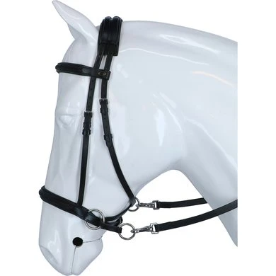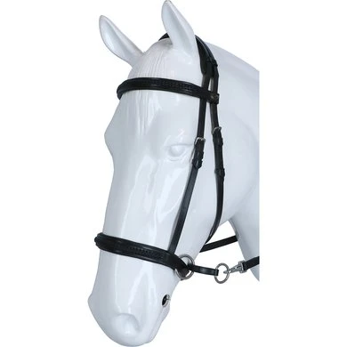 F.R.A. bitloos systeem 5: bitloze optomingen zijn niet nieuw! Eeuwenlang werd een bitloze optoming als vanzelfsprekend ervaren, voordat er ooit aan werd gedacht iets in de mond van het paard te stoppen legde de mens er simpelweg iets omheen. Een touw als halster was destijds voldoende en zo ontstond de eerste bitloze optoming. In combinatie met de ondersteunende gewichts-,been- en gevoelshulpen onderhoudt de ruiterhand via de teugels kontakt, niet met de mond, maar met het hoofd van het paard. Werkingsprincipe: druk op neus, nek èn wangen, nek/kingekruiste teugelvoering. Bouw: De lederen neusriem van deze optomingen, in de markt veelal bekend onder systeem Cook, is aan beide zijden even achter de bakstukken voorzien van een ring. Door deze ringen loopt een soepele lederen riem kruislings over de kin, via de kaken over de nek. Aan beide uiteinden van deze riem worden de gespen of clips van de teugeluiteinden bevestigd. Aan de linkerzijde van het hoofdstel vind je één gesp voor de bakstukafstelling en één gesp voor het verbinden van de kruislingse riemen. Ter bescherming van het nekgebied zijn beide riemen daar met een zachte padding onderlegd. De riemen dienen zodanig door de passanten van deze nekpadding verschoven te worden dat ze aan beide zijden gelijke lengte hebben. De gesp van de kinriem is de enige gesp die nodig is om het hooofdstel op het hoofd te fixeren. Ligging: Evenals bij de meeste bitloze optomingen geldt ook voor deze optomingen dat de neusriem op het harde gedeelte van de neus moet liggen, ongeveer daar waar het neusbeen begint. De kinriem mag gevoelsmatig ’te’ vast, maar beslist niet aangesnoerd zijn. Dit om verdraaiïng van het hoofdstel te voorkomen. De bakstukken van bitloze hoofdstellen met een kin- nekgekruist systeem zullen altijd de neiging hebben enigszins op te bollen. Inwerking: