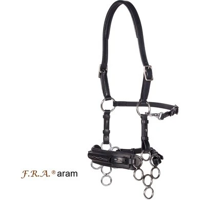 F.R.A. bitloos systeem 2: bitloze optomingen zijn niet nieuw! Eeuwenlang werd een bitloze optoming als vanzelfsprekend ervaren, voordat er ooit aan werd gedacht iets in de mond van het paard te stoppen legde de mens er simpelweg iets omheen. Een touw als halster was destijds voldoende en zo ontstond de eerste bitloze optoming. In combinatie met de ondersteunende gewichts-,been- en gevoelshulpen onderhoudt de ruiterhand via de teugels kontakt, niet met de mond, maar met het hoofd van het paard. Die teugelhulpen worden doorgegeven aan neus, nek en òf wangen. F.R.A.® bitloos biedt je een scala aan bitloze optomingen: maten van shetty tot shire, in diverse designs en materialen van katoen tot leder. F.R.A. bitloos systeem 2: Werkingsprincipe: druk op neus Algemeen: Paarden reageren van nature reflexmatig op druk op hun neus, elk onbedorven paard zal luisteren naar een op de neus uitgeoefende hulp door druk. Geschiktheid: Met de optoming is het opbouwen van een verfijnde, zeer duidelijke communicatie mogelijk. De optoming geeft zeer goede discriminerende signalen en de ervaren ruiter zal zich met deze bitloze optoming in relatief korte tijd goed voelen. In het algemeen biedt de optoming goede mogelijkheden voor het gebruik bij gevoelige paarden en in het bijzonder bij het inrijden van jonge paarden.