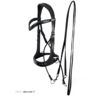 F.R.A. glory systeem 5 / bitl. hoofdstel kaakgekruist – zwart leder met kralen, anti slipteugel met clips