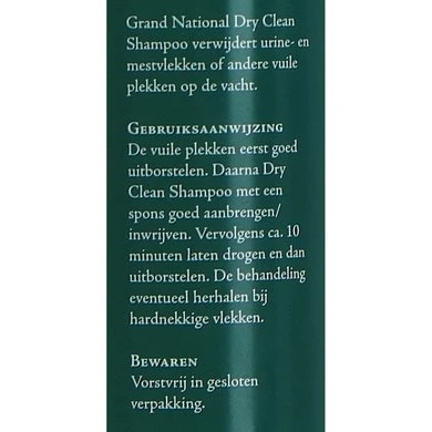 G.N. Dry Clean Shampoo verwijdert urine- en mestvlekken of andere vuile plekken op de vacht. De shampoo is gebruiksklaar en sneldrogend.
