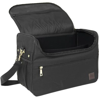 De binnenkant van de tas is aanpasbaar met sterke klittenband verdelers. Hierdoor kan je de tas perfect aanpassen aan jouw noden. In het hoofdvak kan je borstels, sprayflacons en andere poetsspullen opbergen. Aan de binnenflap kan je kleinere items opbergen in een apart vak. Aan de voorkant van de tas is een groot vak waar je spullen zoals elastiekjes, naald en draad kan opbergen. Aan beide kanten is ook nog een rekbaar mesh zakje. De poetstas sluit met een sterke rits en heeft een verwijder- en aanpasbare schouderband voor makkelijk en comfortabel transport. De zijkanten van de tas zijn versterkt zodat het extra sterkte en bescherming biedt aan de borstels. De poetstas is 42,5 cm x 32,5cm x 20cm (L x H x B).