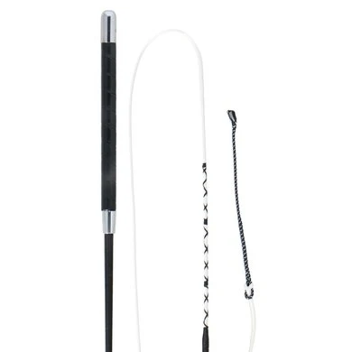 Luxe lichtgewicht boogzweep voorzien van een lederen handvat met zilverkleurige dop. Steel van fiberglas, nylon omvlochten en slag. Lengte slag incl. popper: 95cm