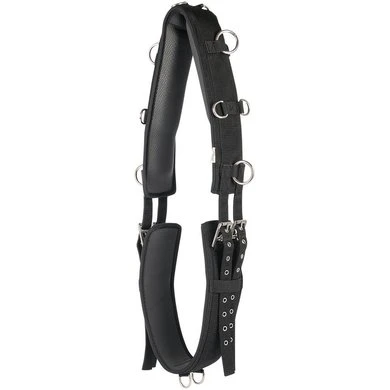 De Harrys Horse longeersingel sharkskin heeft een neopreen voering en een sharkskin met groeven die zorgen voor extra ventilatie en afvoer van transpiratie. De longeersingel heeft 12 ringen waarvan 2 ringen aan de onderkant. De singel is aan beide kanten verstelbaar doormiddel van de rolgespen.