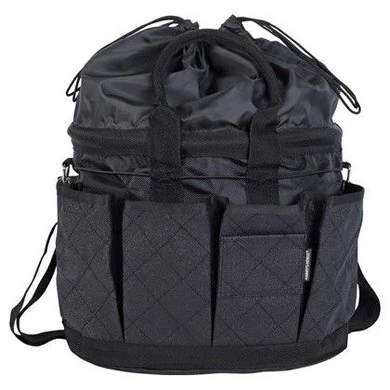 Poetstas ovaal met vele opbergvakken! Bovenkant afsluitbaar met trekkoord. De poetstas heeft zowel aan de binnen- als buitenzijde een afsluitbaar vak met een rits. Met afneembare draagband.