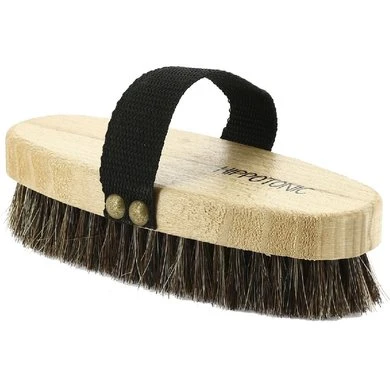 Extra zachte borstel met rug van gelakt beukenhout. 25 mm lange echte haren. Zwart handvat van polypropyleen met vernikkelde messing klinknagels. Gemaakt in Frankrijk.