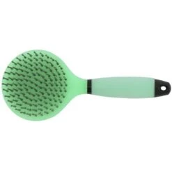 Polypropylene borstel met nylon tanden om voorzichtig en efficient de staart en manen van het paard te kammen. ABS handvat met memory gel. Gerperforeerd ABS aluminium vergulde dop.