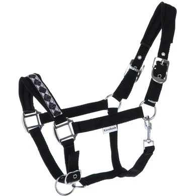 Het perlon halster “Classic” is een blikvanger op het hoofd van elk paard: de neusriem in ruitdessin is qua kleur afgestemd en gevoerd. De hals en neus zijn zacht onderlegd. Het halster is aan beide kanten verstelbaar.
