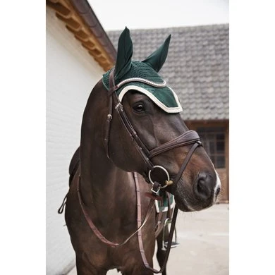 Fly Veil Velvet Contrast beschermt de oren van het paard tegen vliegen tijdens het