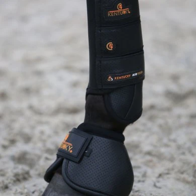 De springschoenen Air Tech bieden een uitstekende schok absorptie en maximale bescherming. Het zijn sterke, flexibele, comfortabele springschoenen die het paardbeschermen voor blessures die veroorzaakt worden door het overhalen tijdens het bewegen. De schokabsorberende gel zorgt ervoor dat de impact tijdens het overhalen wordt opgevangen. De buitenzijde van de springschoenen Air Tech bestaat uit geperforeerd artificieel leder waardoor ze een perfecte match vormen met onze Eventing Boots Air Tech. Dit materiaal absorbeert geen water waardoor ze zeer licht blijven. De springschoenen Air Tech zijn machine wasbaar op 30° (geen droger).