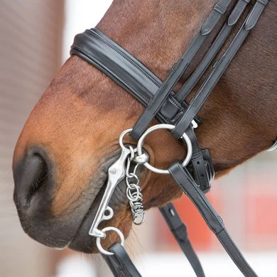 ● Gebogen frontriem (niet gevoerd) naar keuze verkrijgbaar met zilverkleurige metalen kralen of met witte of grijze kristallen