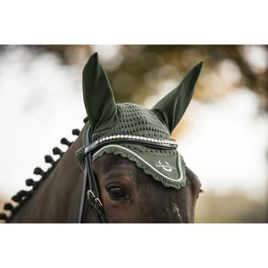 Oornetje LC met elastische oren, sierkoord en hoefijzer logo. sierkoord en hoefijzer logo.