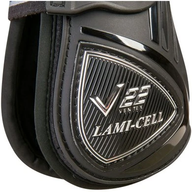 Peesbeschermers “V22” met knie bescherming. Zeer ademend en zacht V22 neopreen voering, carbon look en elastische snelsluiting.