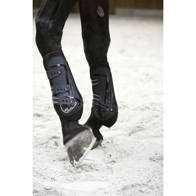 Beenbeschermers “V22” Carbon met kogelbescherming. Zeer ademend en zacht V22 neopreen voering en elastische snelsluiting.