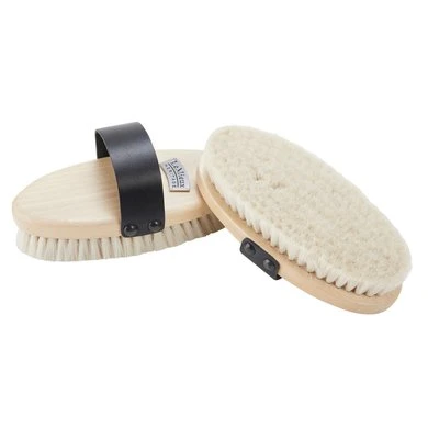 Perfecte borstel voor de glansafwerking, zal de doffe vacht omtoveren tot een mooie glans. Ideaal na het scheren en voor gevoelige paarden. Gemaakt van natuurlijk zacht geitenhaar met een massief generfd houten handvat aan de buitenkant gegroefd voor meer grip. Compleet met een lederen handvat van kwaliteit en prachtige LeMieux Heritage-badge van massief metaal
