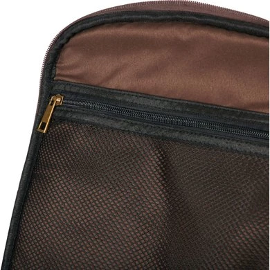 Slim en stijlvol PU lederen verzorgingstas met gestructureerd compartiment voor borstels. Afgewerkt met imitatie suède details.