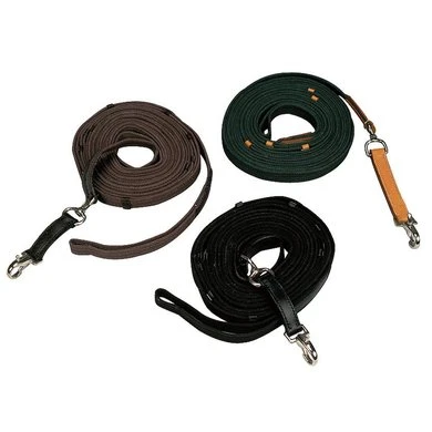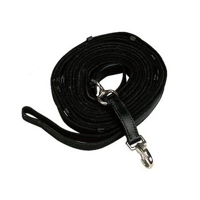 Met vrijdraaiend buffellederen riempje en musketon. Ong. 10 m lang.