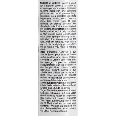 De innoverende technologie van deze creme-gel is gelijk aan de cosmetiche crème die wij gebruiken om de huid van het lichaam en het gezicht te hydrateren en te verzachten. Dankzij de werkzame bestanddelen en de gelformule is haar penetratie vermogen hoog. Bevat avocado, zonnebloem en tea tree olie en cacao boter die geëmulgeerd zijn in water, en glycerine. Deze samenstelling verzorgt leer met een hydraterend effect, dringt snel diep in het leer, voorkomt schimmelvorming en houdt bacteriën weg.
