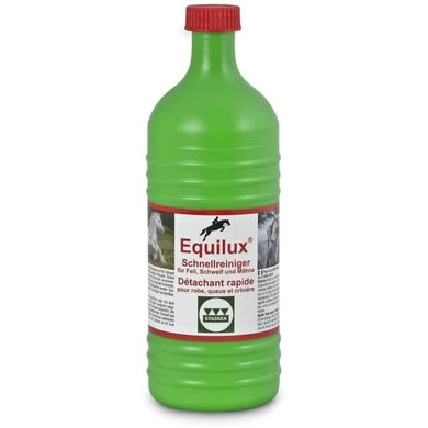 Snelreiniger voor paarden, speciaal voor schimmels.Equilux reinigt vacht, staart en manen zonder water en zonder wassen in een paar minuten. In de vroege morgen moet je al naar het concours, je hebt haast en de schimmel heeft alweer op zijn zelfgemaakte bio-verwarming geslapen? Geen probleem met Equilux! Snel op het paard spuiten, even laten inwerken, met een doek of met keukenpapier afwrijven – klaar is Kees!De beruchte gele vlekken op schimmels en de grijze sluier op zwarte en bruine paarden verdwijnen in een keer. Equilux is gebruiksklaar. De vacht hoeft vooraf niet bevochtigd of gewassen te worden. Hierdoor kan Equilux ook in de winter gebruikt worden, of als het paard verkouden is. Equilux is snel drogend, is niet vet en is geurloos. Bij het poetsen van het paard wordt hiermee veel tijd bespaard. De werkzame stoffen verwijderen snel en grondig vlekken van mest, urine, gras, vuil enz. Equilux beschermt vacht, staart en manen. Het geeft een mooie glans en maakt vacht en haar vuilafstotend. Voor het verwijderen van kleine vlekken, voor het gebruik in het gezicht van het paard en voor schrikachtige paarden is Equilux ook als roll-on flesje verkrijgbaar. Die kun je handig naar een concours meenemen. Equilux is niet-giftig, zacht verzorgend en stoort de huidademhaling niet.
