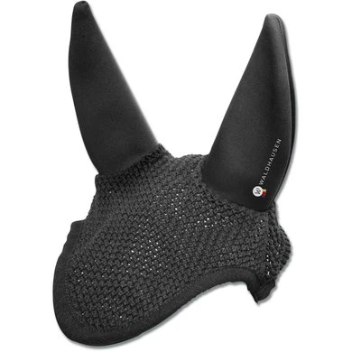 Vliegenmutsen gevoerd met geluidsabsorberend materiaal in de oordelen. Speciaal ontworpen voor paarden die gevoelig zijn voor geluid. De ingeweven glitterdraad maakt van deze vliegenmuts een echte eyecatcher.