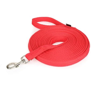 Zachte buisvormige longeerlijn van nylon met draaibare trekkerclip aan het ene uiteinde en handlus aan het andere.