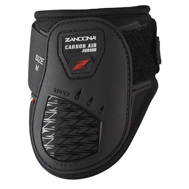De 100% gemaakt in Italië “CARBON AIR JUNIOR Fetlock” is bestudeerd om jonge springpaarden te beschermen tegen botsingen en kneuzingen bij de kogel van de achterhand (in overeenstemming met de internationale voorschriften voor categorieën “jonge paarden”). Ze zijn samengesteld door een externe TPU-structuur met gedifferentieerde dikte, transpirerend dankzij het geperforeerde neopreen en geventileerd door 3 luchtopeningen. Koolstofvezelelementen zijn onder de schaal aanwezig om de verbindingen thermisch te isoleren van de warmte die wordt gegenereerd door externe wrijving, terwijl de mechanische weerstand tegen schokken wordt verhoogd. De afmetingen en de absolute ergonomische vorm zijn ontwikkeld om de ledemaatstructuur nauwkeurig te kopiëren, waardoor een perfecte positionering wordt gegarandeerd en elke vorm van stress wordt vermeden.